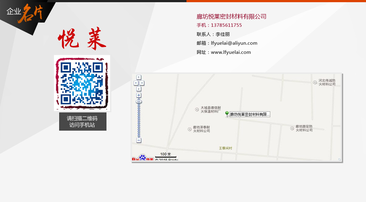 廊坊悅萊密封材料有限公司座落在河北省大城縣留各莊開發區,交通便利,地理位置相當優越。我公司擁有成熟的工藝和設備,企業規模、產品質量可靠。 我公司主要生產石棉氈、石棉被、石棉紙、石棉橡膠板、石棉絨、四氟板、四氟墊片、各種盤根、盤根環、柔性石墨、包覆墊片、石棉水泥板、各種橡膠板、海泡石等石棉制品以及聚四氟乙烯制品、金屬纏繞墊片等密封材料,廣泛應用于國防、冶金、石油、化工、電力、造船、造紙、制藥、礦山等行業,產品規格齊全,質量穩定,享有良好信譽。 本公司自成立到如今,為廣大新...